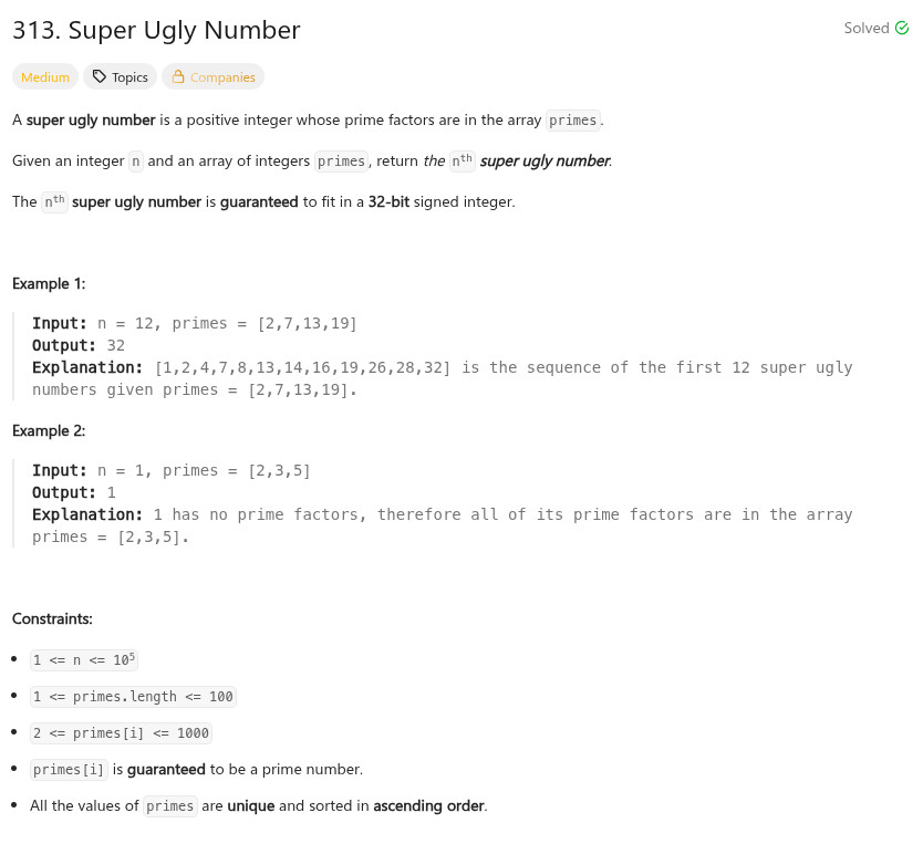 程式語言 - LeetCode - C++ - 313. Super Ugly Number