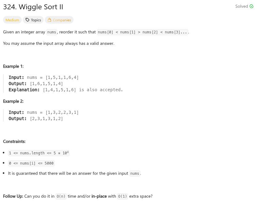 程式語言 - LeetCode - C++ - 324. Wiggle Sort II