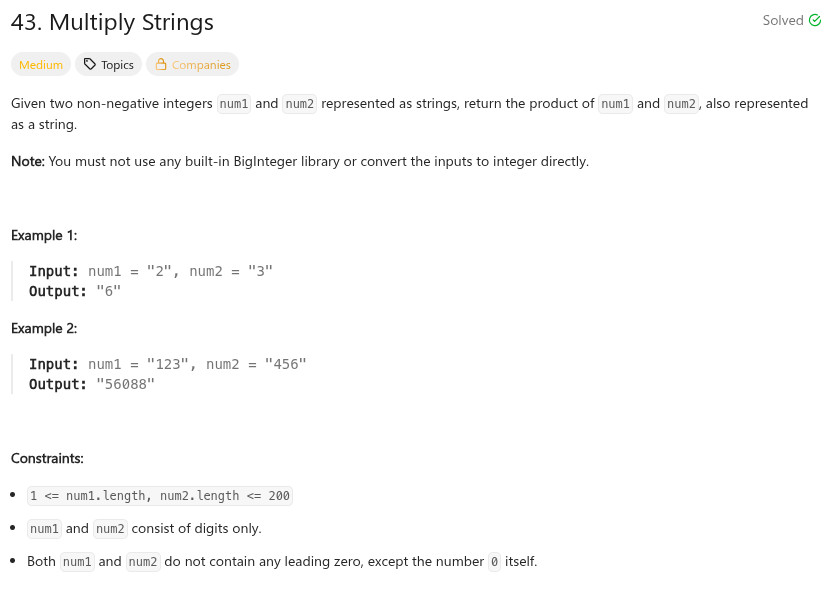 string multiply(string num1, string num2) {