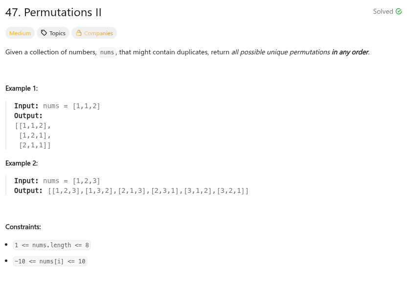程式語言 - LeetCode - C++ - 47. Permutations II