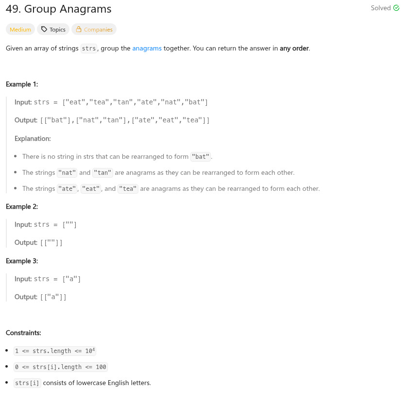 vector<vector<string>> groupAnagrams(vector<string>& strs) {