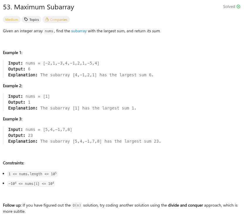 程式語言 - LeetCode - C++ - 53. Maximum Subarray