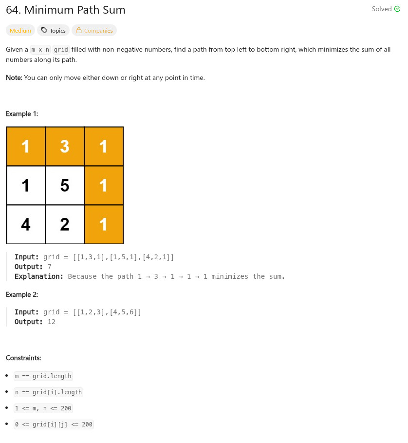 dp[i][j] = grid[i - 1][j - 1] + min(dp[i - 1][j], dp[i][j - 1]);