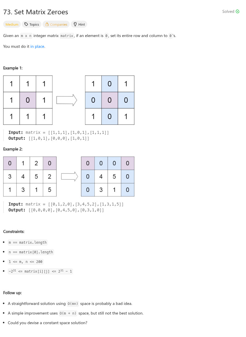 程式語言 - LeetCode - C++ - 73. Set Matrix Zeroes