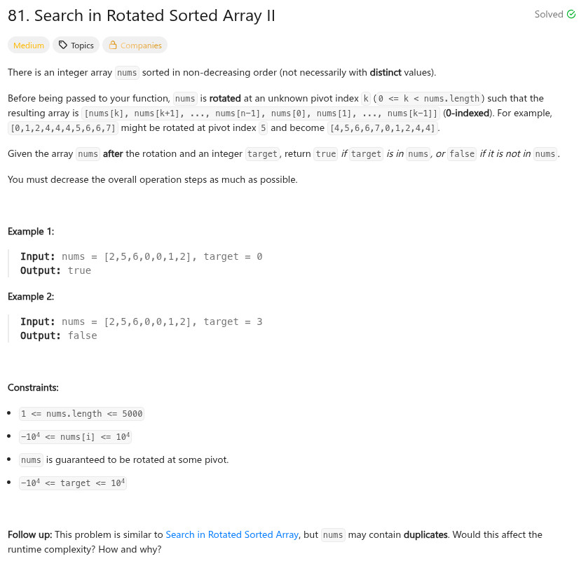 程式語言 - LeetCode - C++ - 81. Search in Rotated Sorted Array II