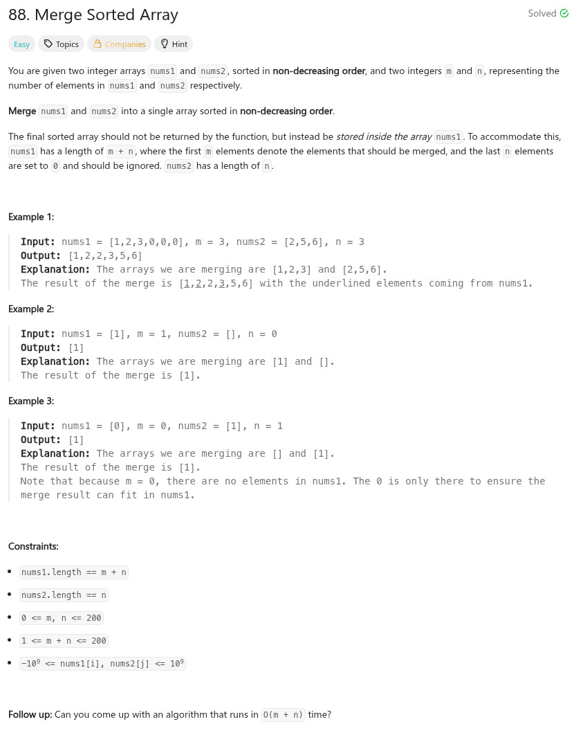 程式語言 - LeetCode - C++ - 88. Merge Sorted Array