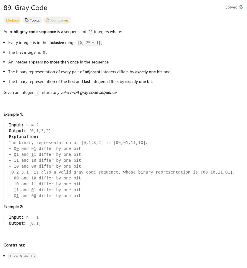 程式語言 - LeetCode - C++ - 89. Gray Code