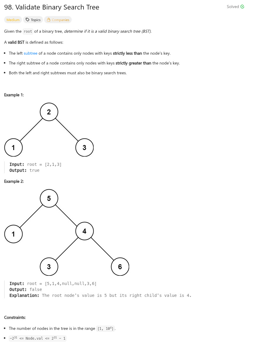 return dfs(n->left, lower, n->val) && dfs(n->right, n->val, upper);