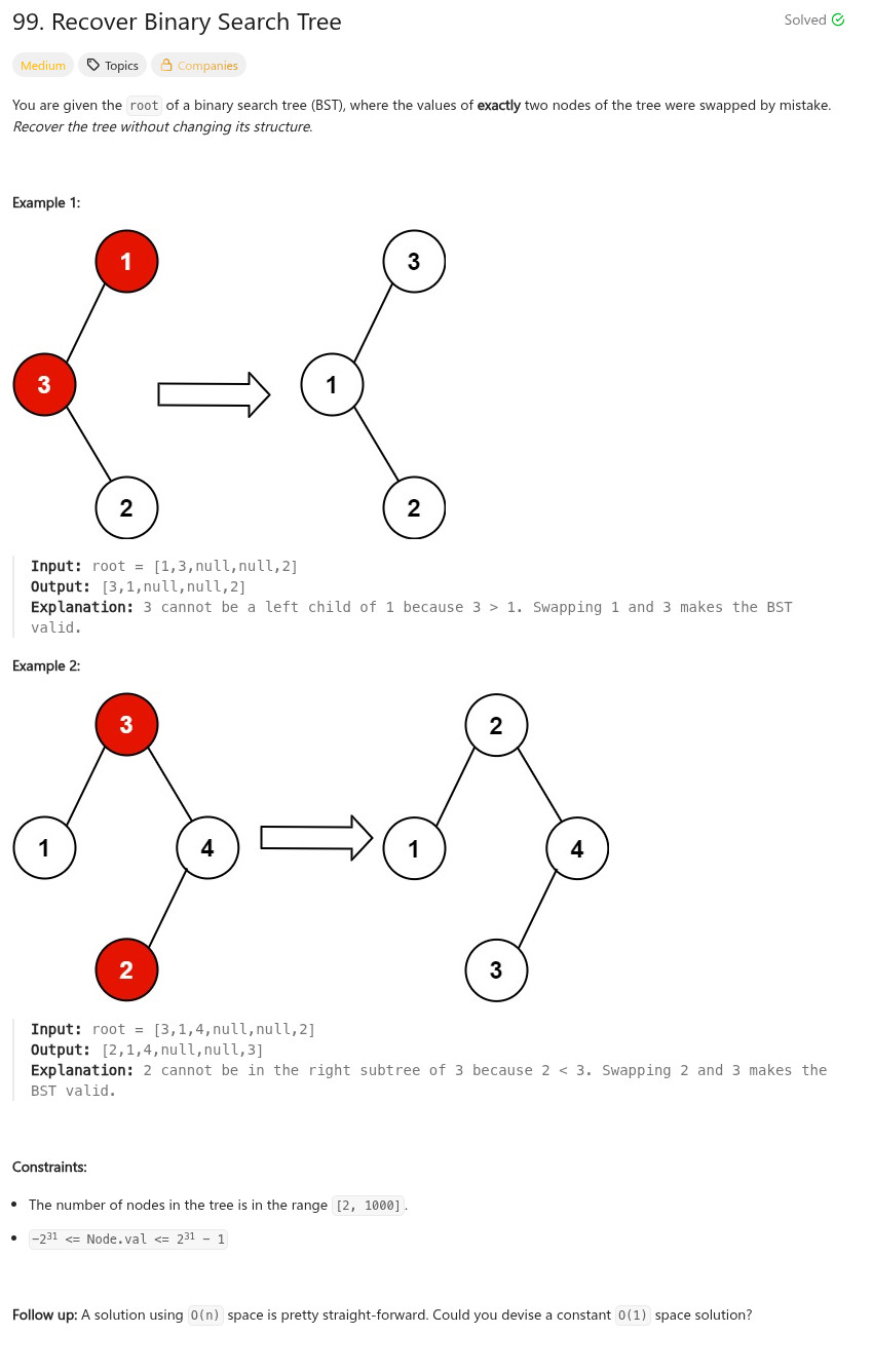 程式語言 - LeetCode - C++ - 99. Recover Binary Search Tree