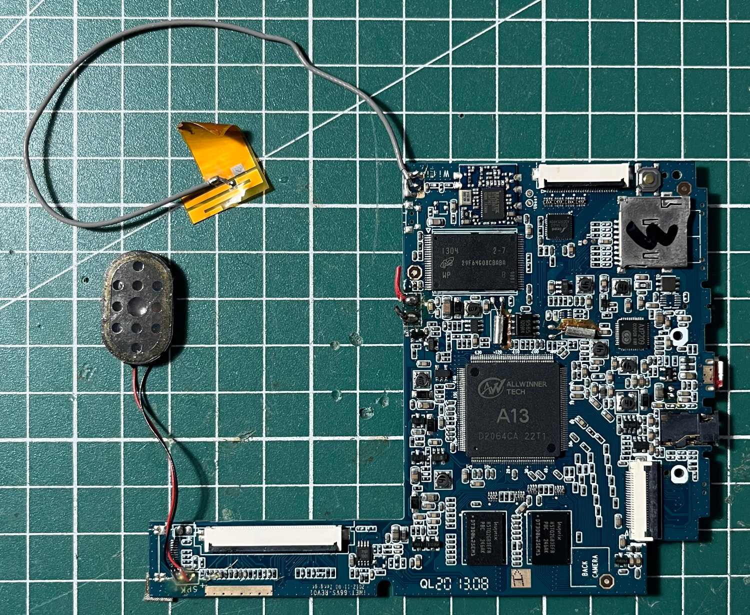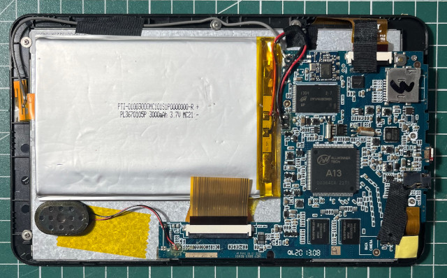 正面 側邊 上邊 側邊 下邊 背面 背蓋 PCB Camera 3.7v 3000mA 屏 RTL8188ETV、GSL1680、29F64G08CBABA、AXP209、Allwinner A13、H5TQ2G83EFR PCB Debug Port